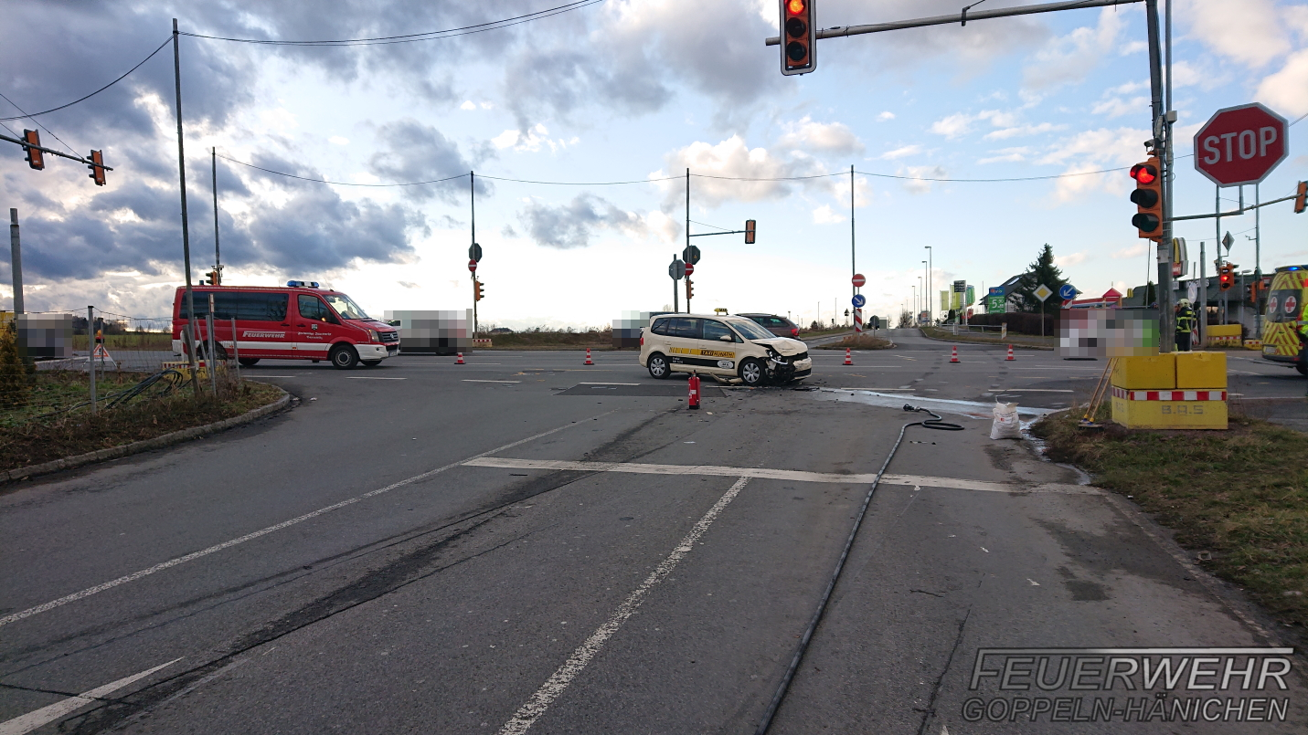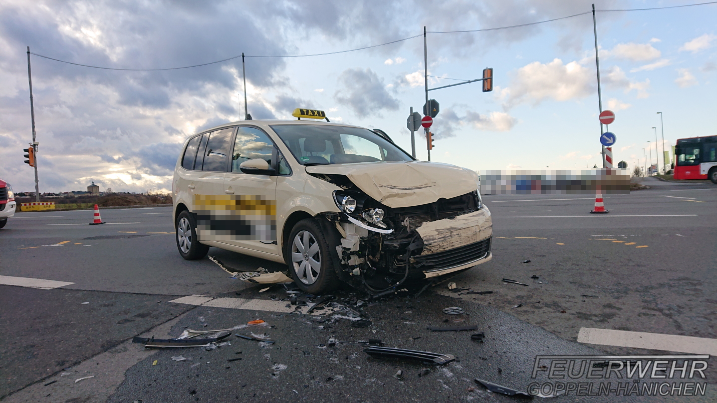 Aus noch ungeklärter Ursache stießen am Nachmittag ein Taxi, welches Richtung Dresden unterwegs war, sowie ein PKW, welcher links abbiegen wollte, zusammen.