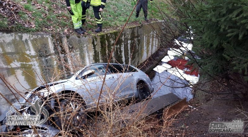 In Höhe des Golfplatzes verlor der Fahrer eines PKWs die Kontrolle über seinen Kombi. Der PKW kam nach links von der Fahrbahn ab, fuhr eine Böschung herunter und stürzte in den Poisenbach. Der PKW-Fahrer wurde verletzt und vorsorglich ins Krankenhaus zu eingeliefert. Die auslaufenden Betriebsstoffe wurden aufgenommen.
